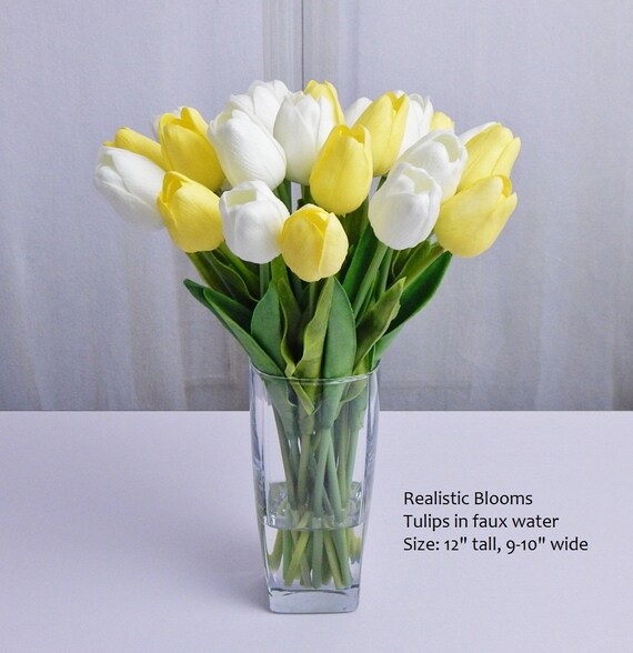 Outfitted with a water illusion insert the nearly natural artificial tulips arrangement in glass planter looks just like an arrangement of freshly cut flowers. There are many sizes colours and other details to ch.