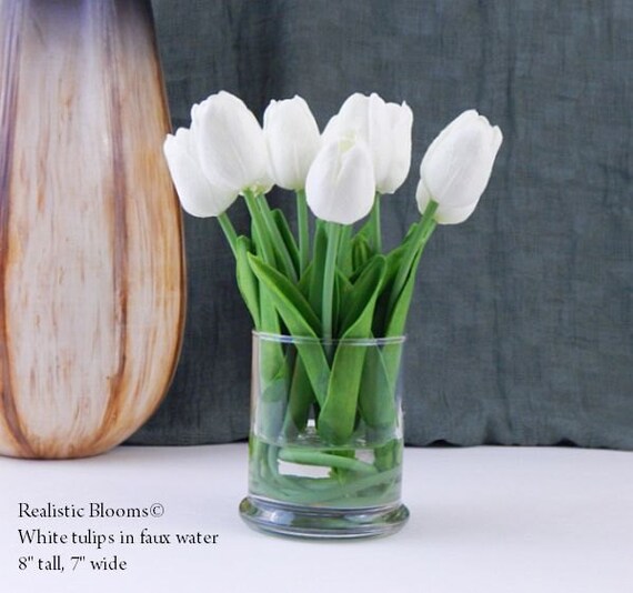 White Offwhite Tulips Silk Glass Vase Faux Water Acrylic Etsy