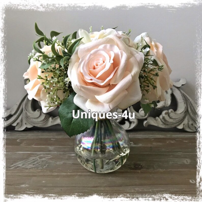 Sabrina Soft Peach Silk Roses And White Tulips Glass Vase Etsy