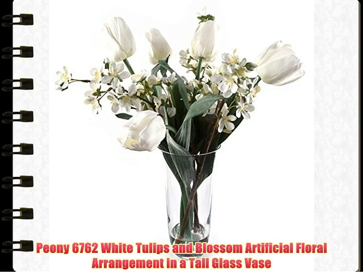 Peony 6762 White Tulips And Blossom Artificial Floral Arrangement
