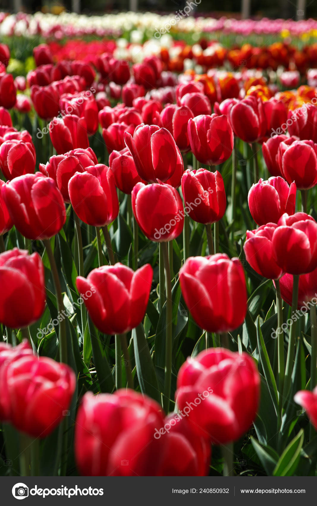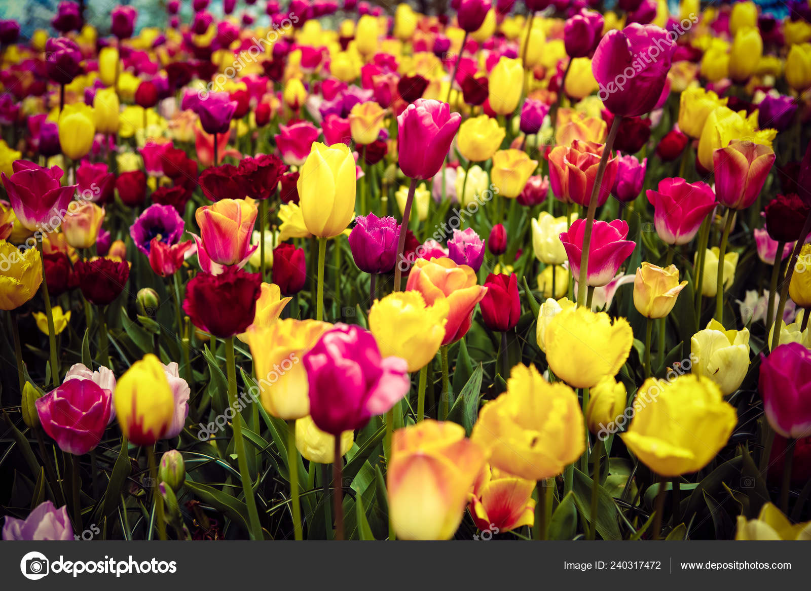 Lots Of Colorful Tulip Flowers Natural Spring Background Stock