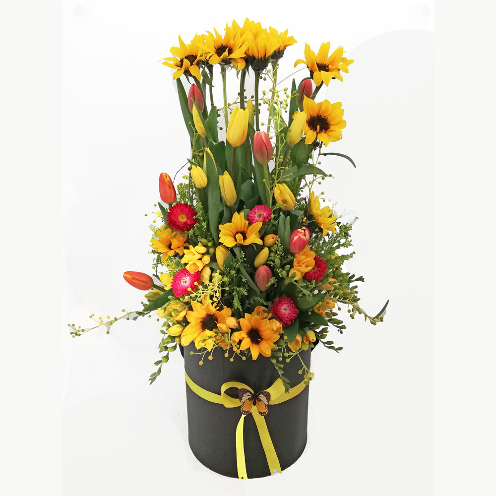 Box Of Sunflowers Tulips And More Wedelivergifts