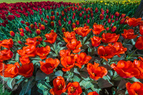 Rows Of Red Tulips In Field Closeup Horizontal Stock Image Image