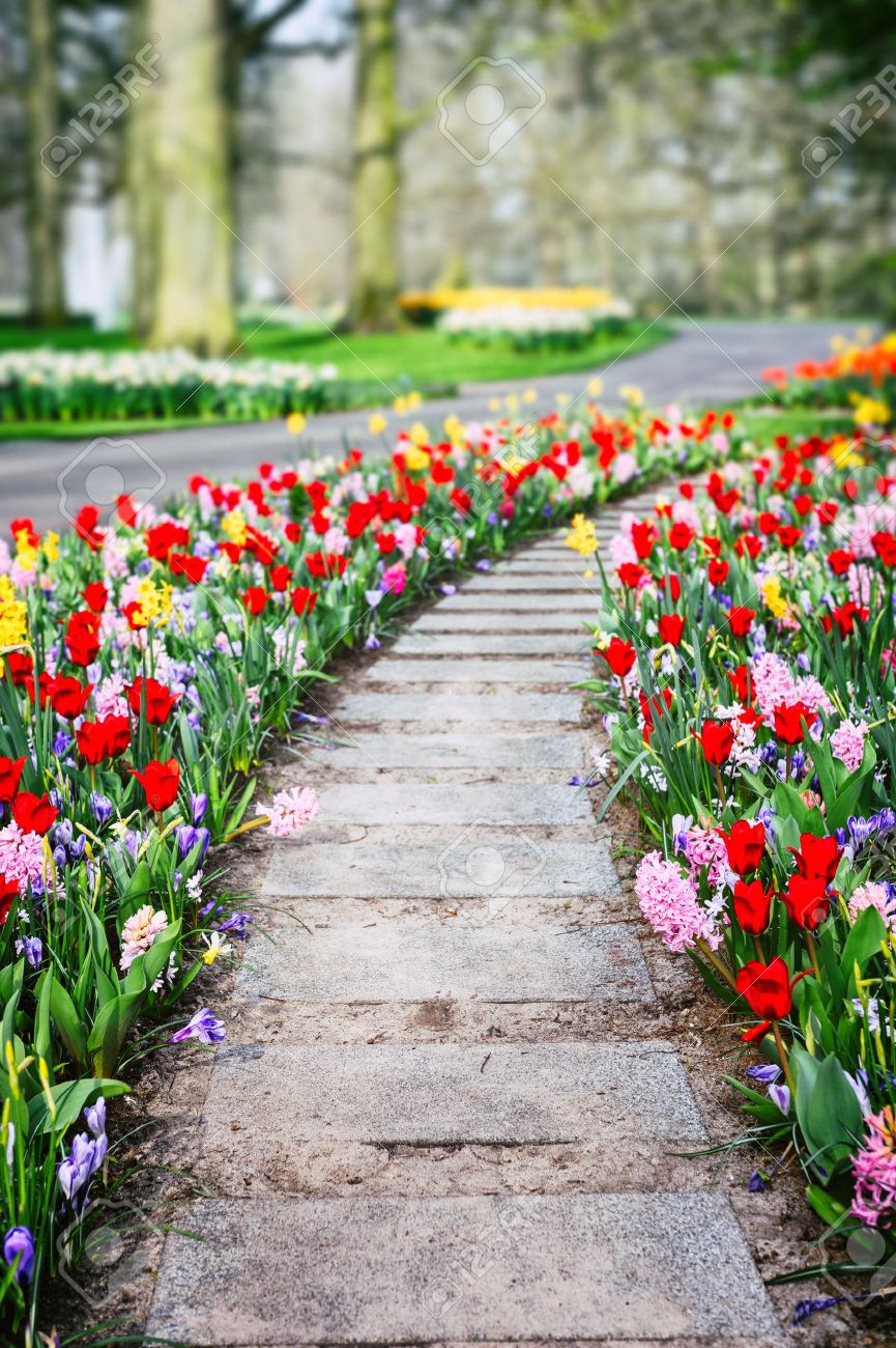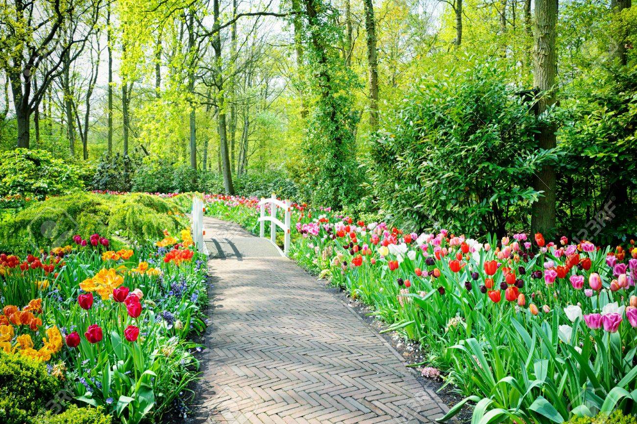 Spring Park Landscape With Multicolor Tulips Keukenhof Garden