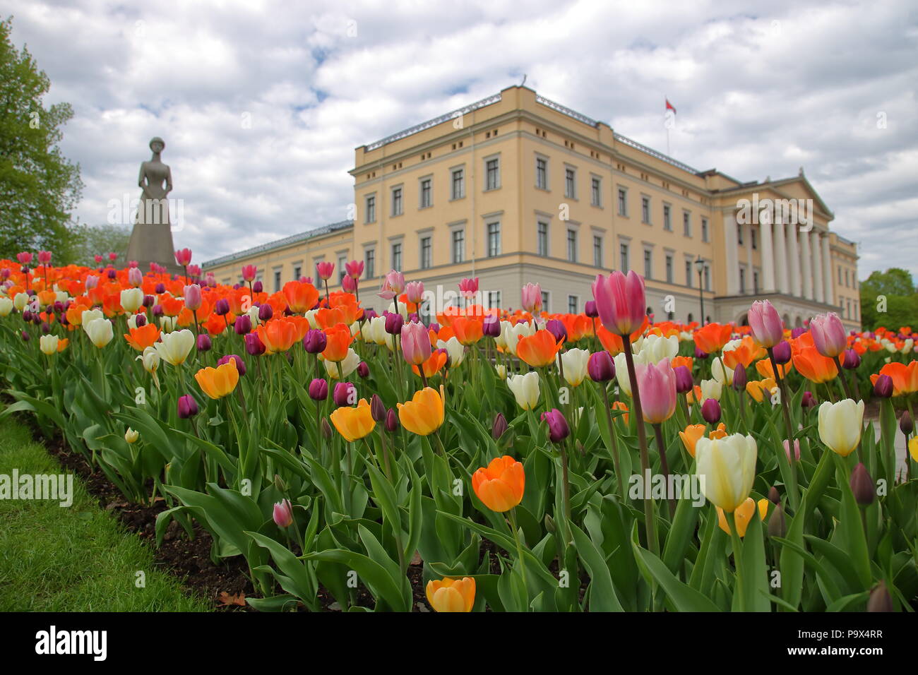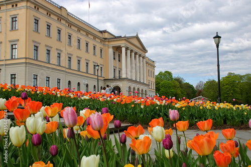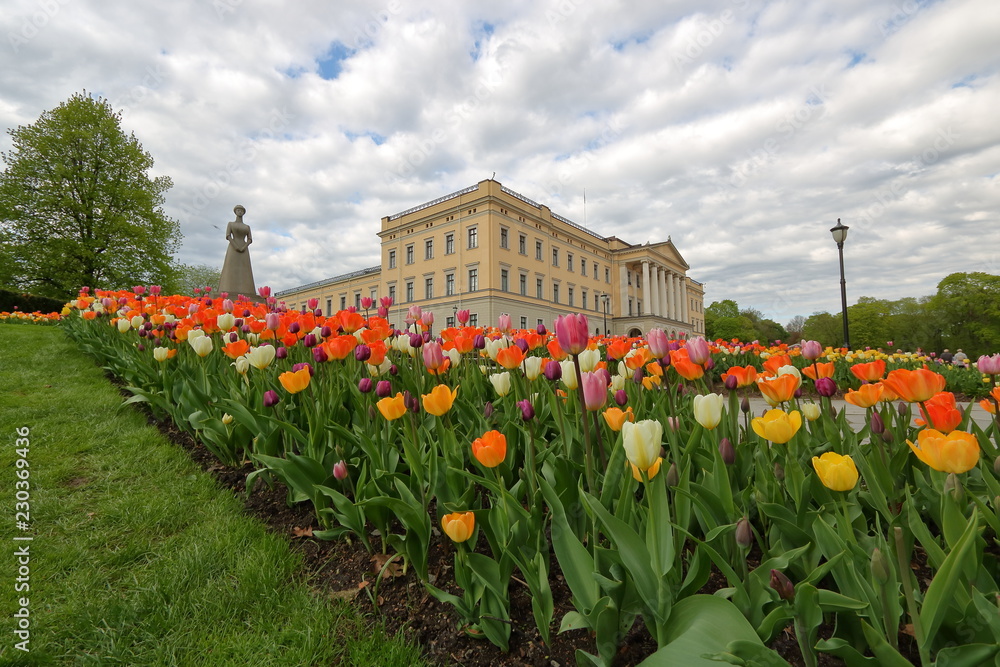 Poster Colorful Tulips In Royal Palace Garden In Oslo Norway In