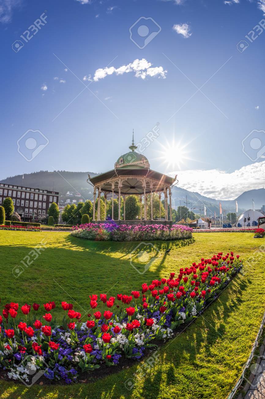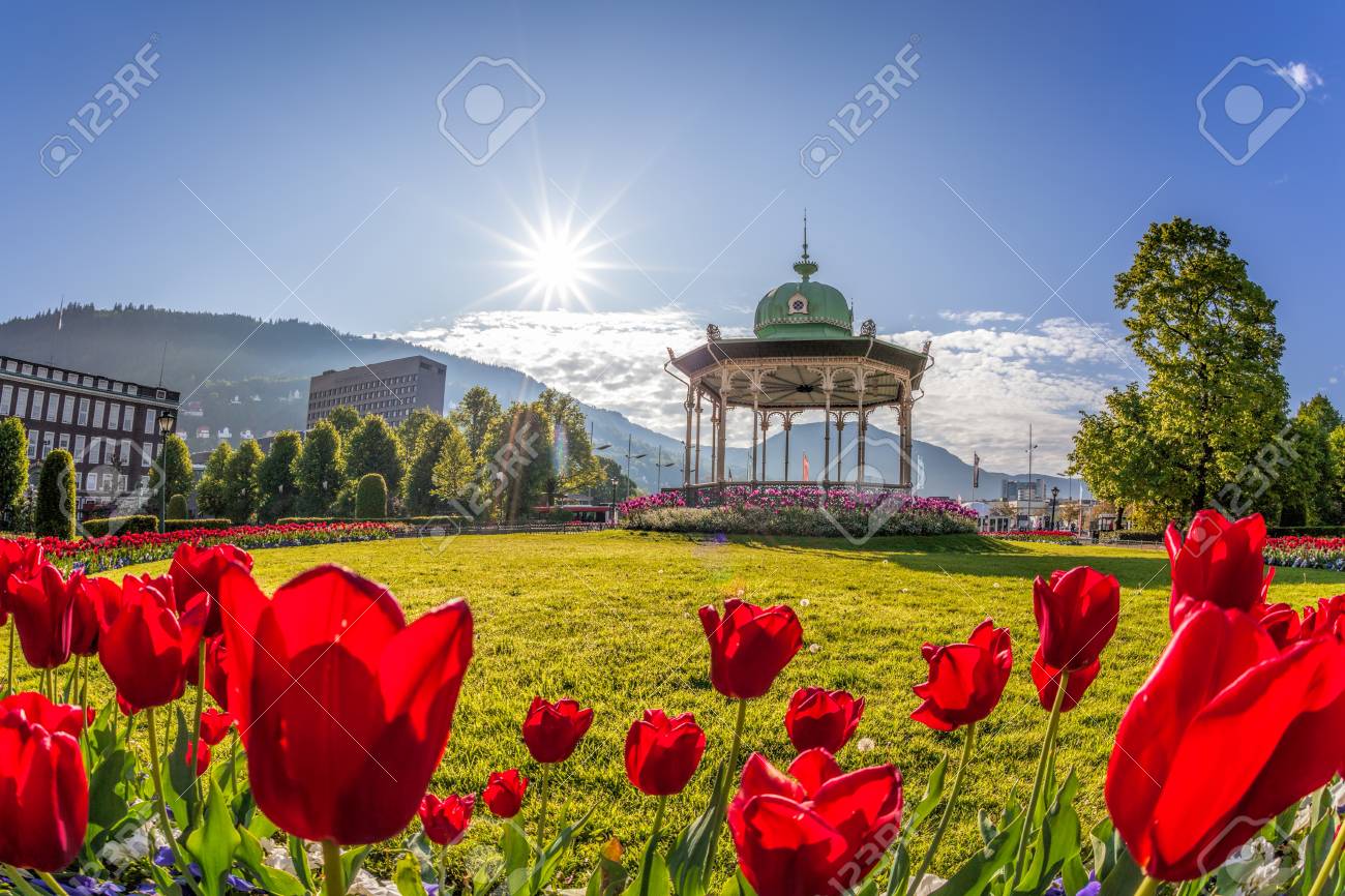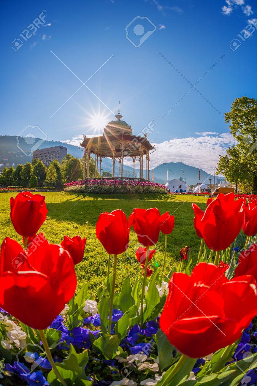 Spring Morning In Bergen With Tulips Norway Stock Photo Download