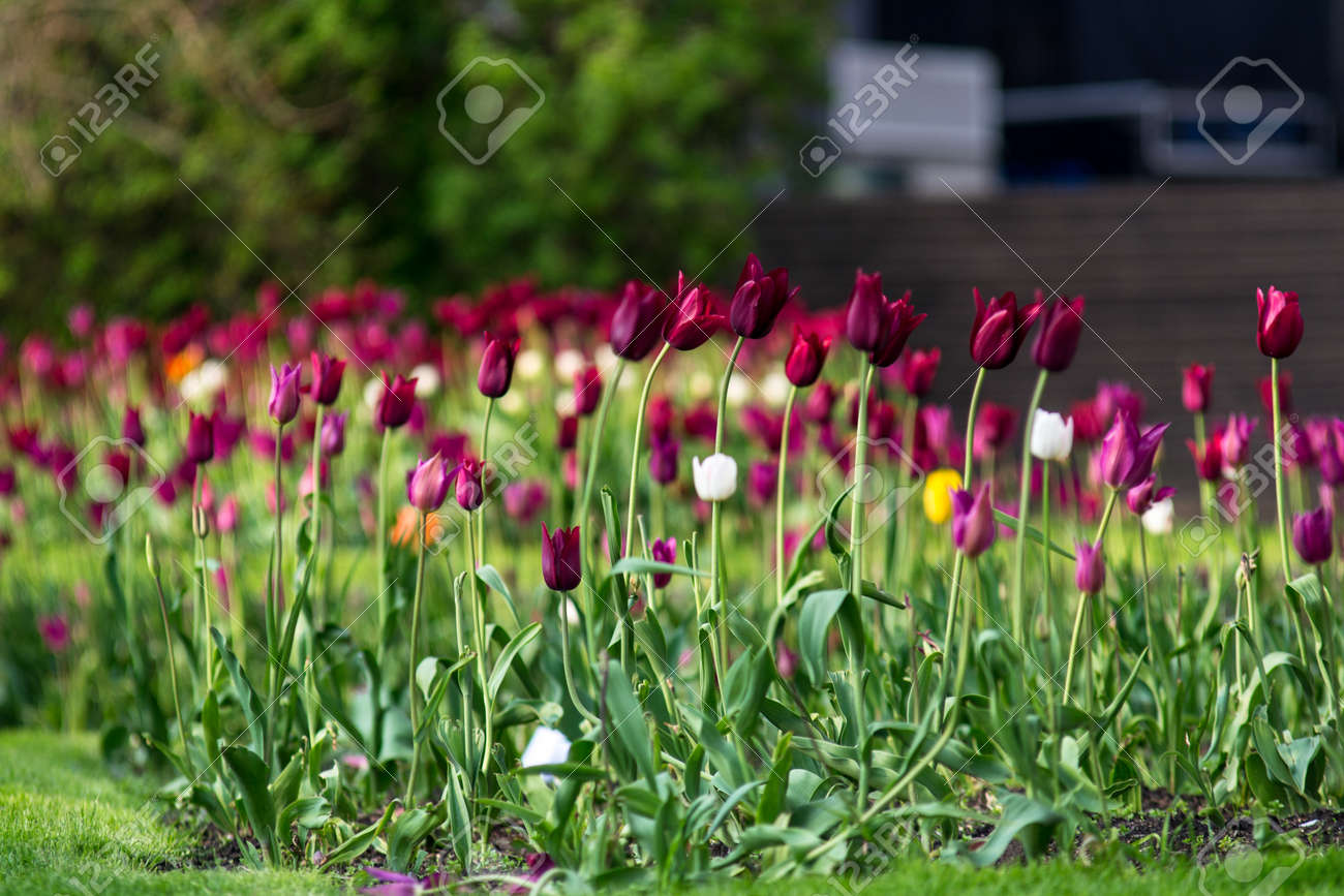 Oslo Norway May 16 2016 A Flowerbed Of Tulips Lies In
