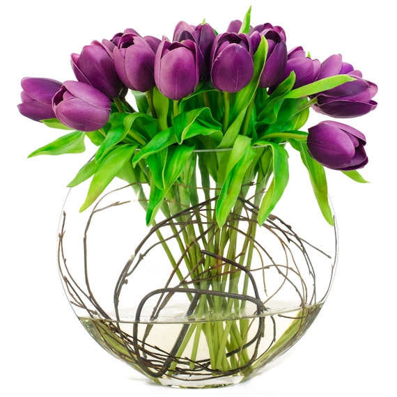 Large Real Touch Purple Tulip Artificial Faux In Half Moon Etsy