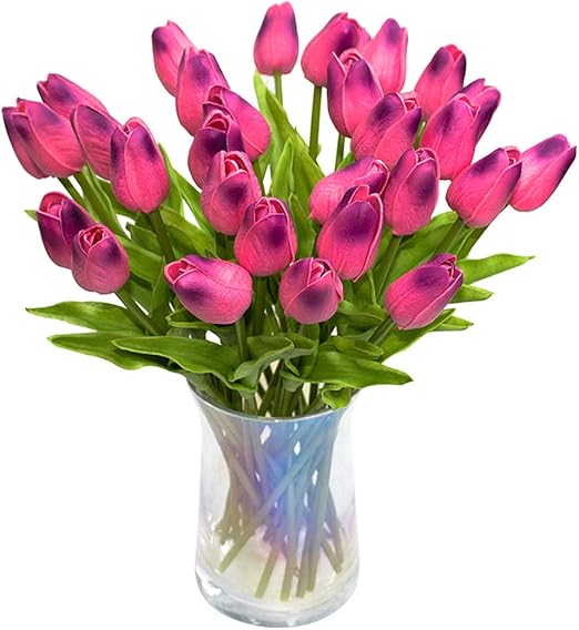 Dark Purple Joejisn 30pcs Artificial Tulips Flowers Real Touch