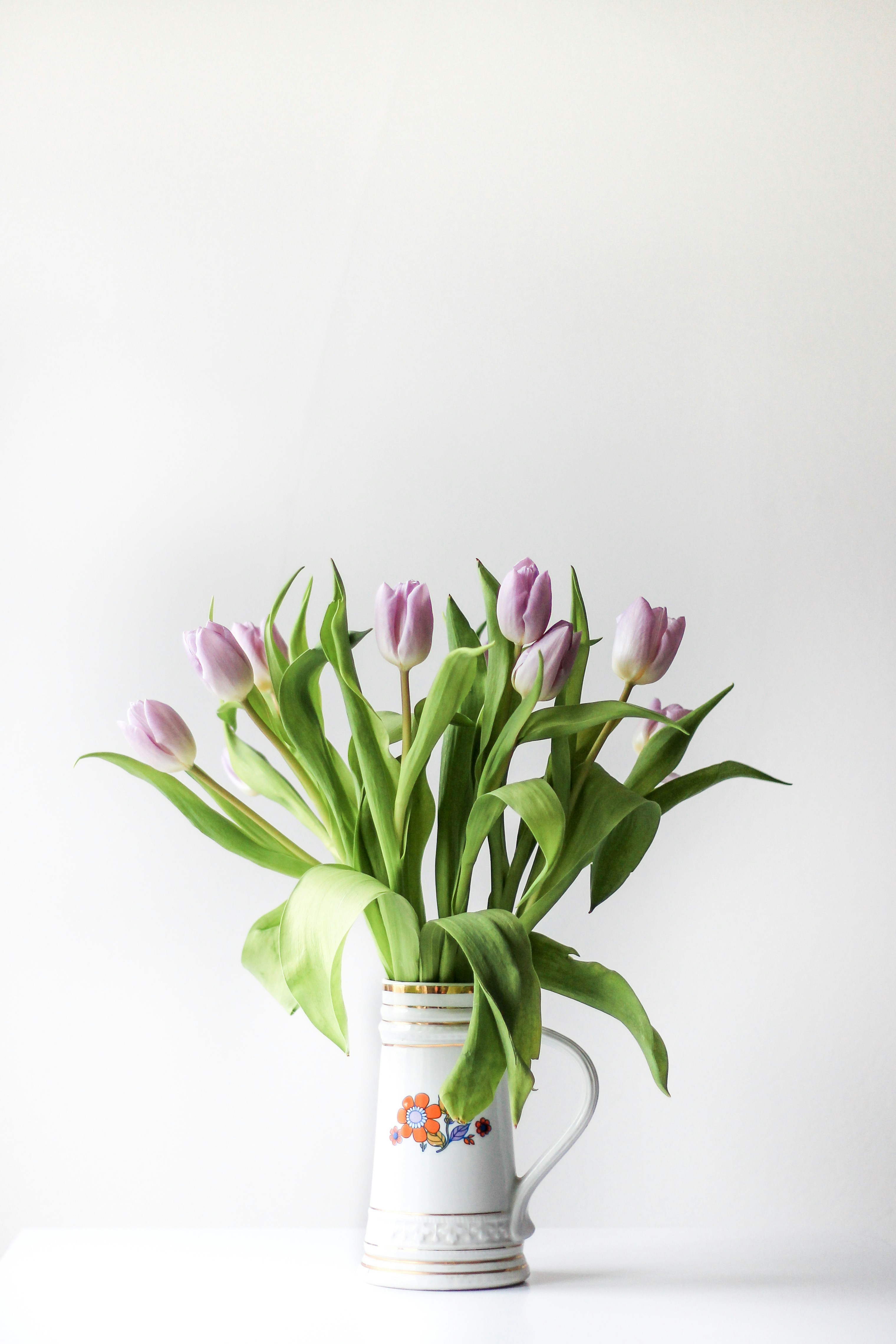Bouquet Of Tulips In Vase On White Background Wallpaper Weni