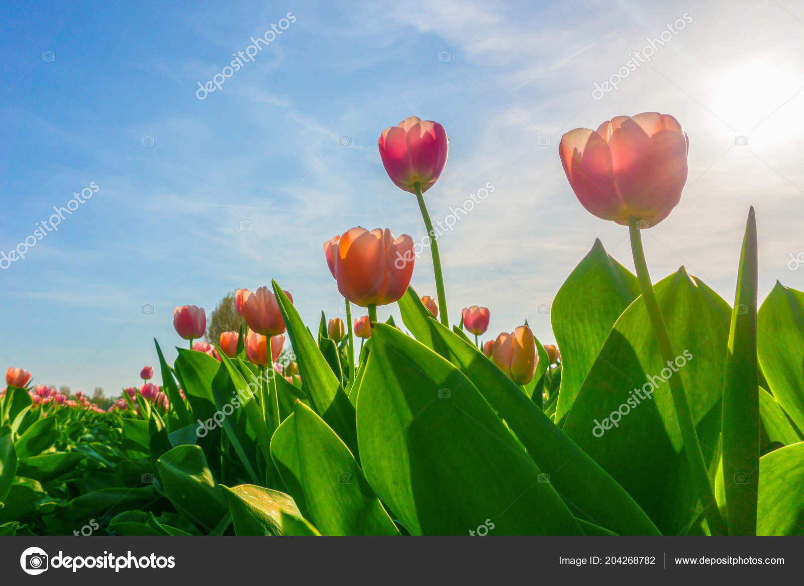 Beautiful Tulips Fields Netherlands Spring Sunrise Sky Amsterdam