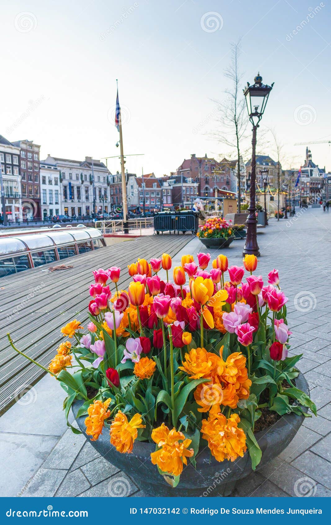 Beautiful Spring Tulips In Amsterdam The Netherlands Stock Photo