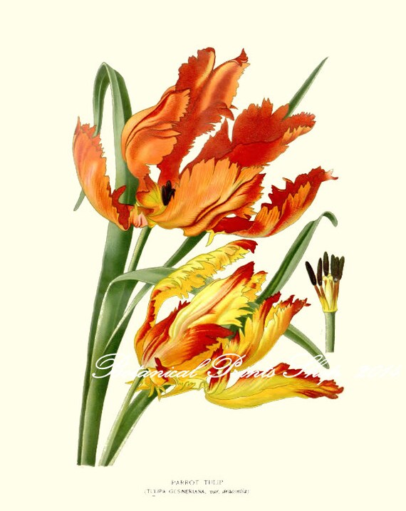Botanical Print Parrot Tulip Orange Flower Print Etsy