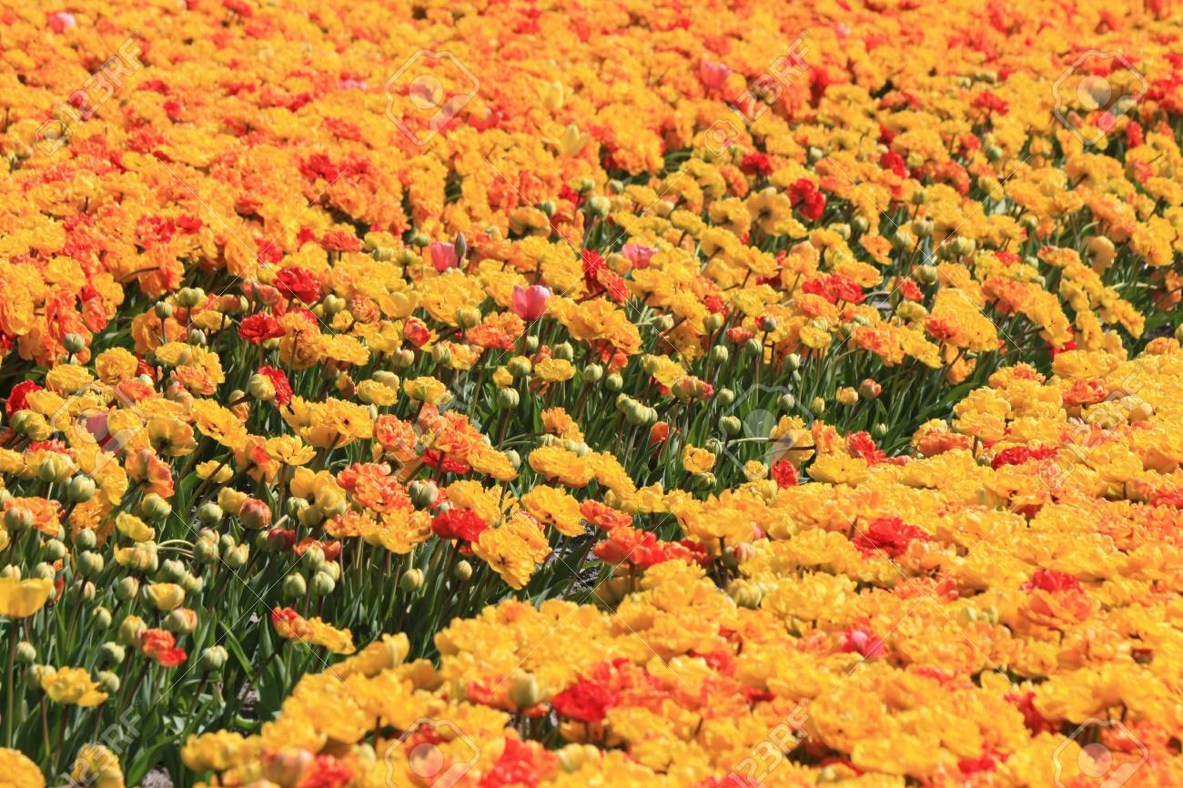 Dutch Floral Industry A Field With Exotic Yellow And Orange