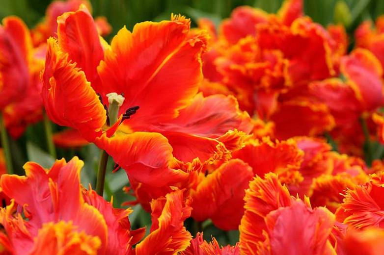 A Mass Of Striking Orange Parrot Tulips With Fringed Edges