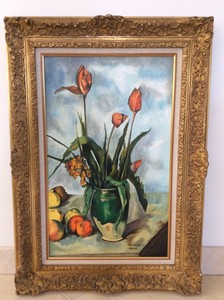 Vintage French Reproduction Paul Cezanne Tulips On Vase Signed
