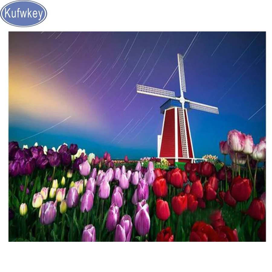 5d Diy Diamond Painting Tulip Dutch Windmills Full Square Drill