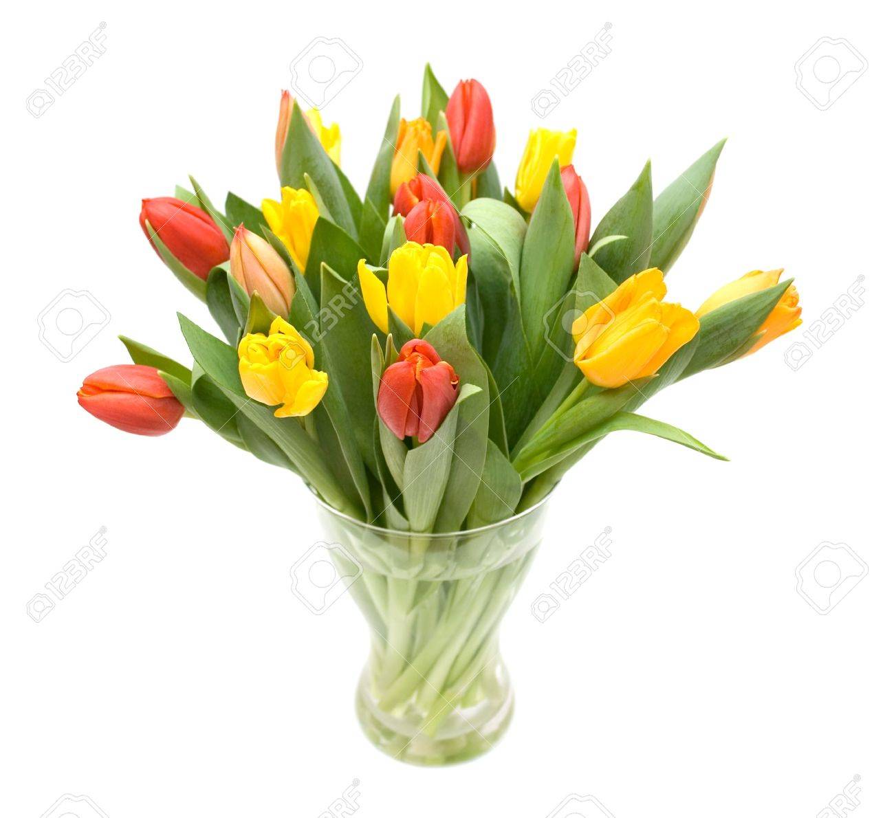 Red Orange And Yellow Tulips In Vase Stock Photo Picture And