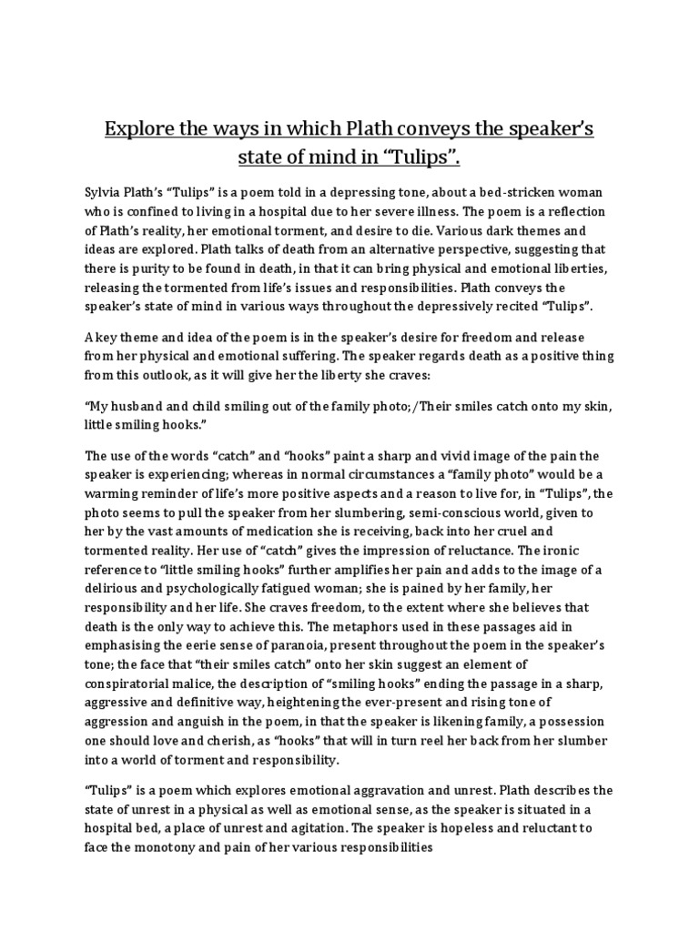 Sylvia Plath Poems Tulips Summary And Analysis Gradesaver