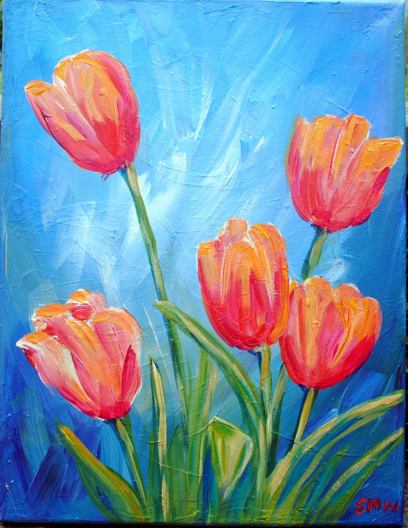 Red Tulips Spring Painting Flower Art Spring Flowers Red Etsy