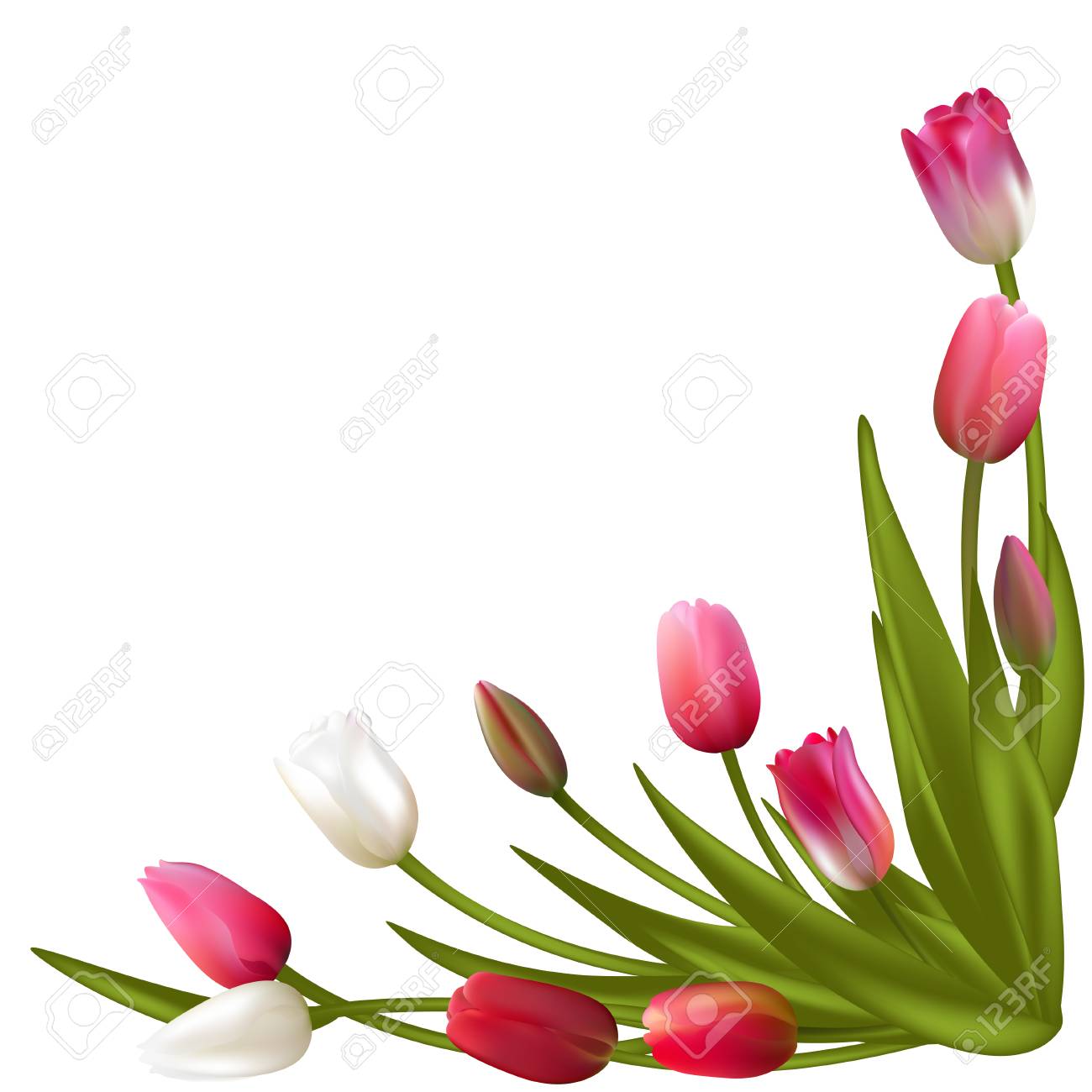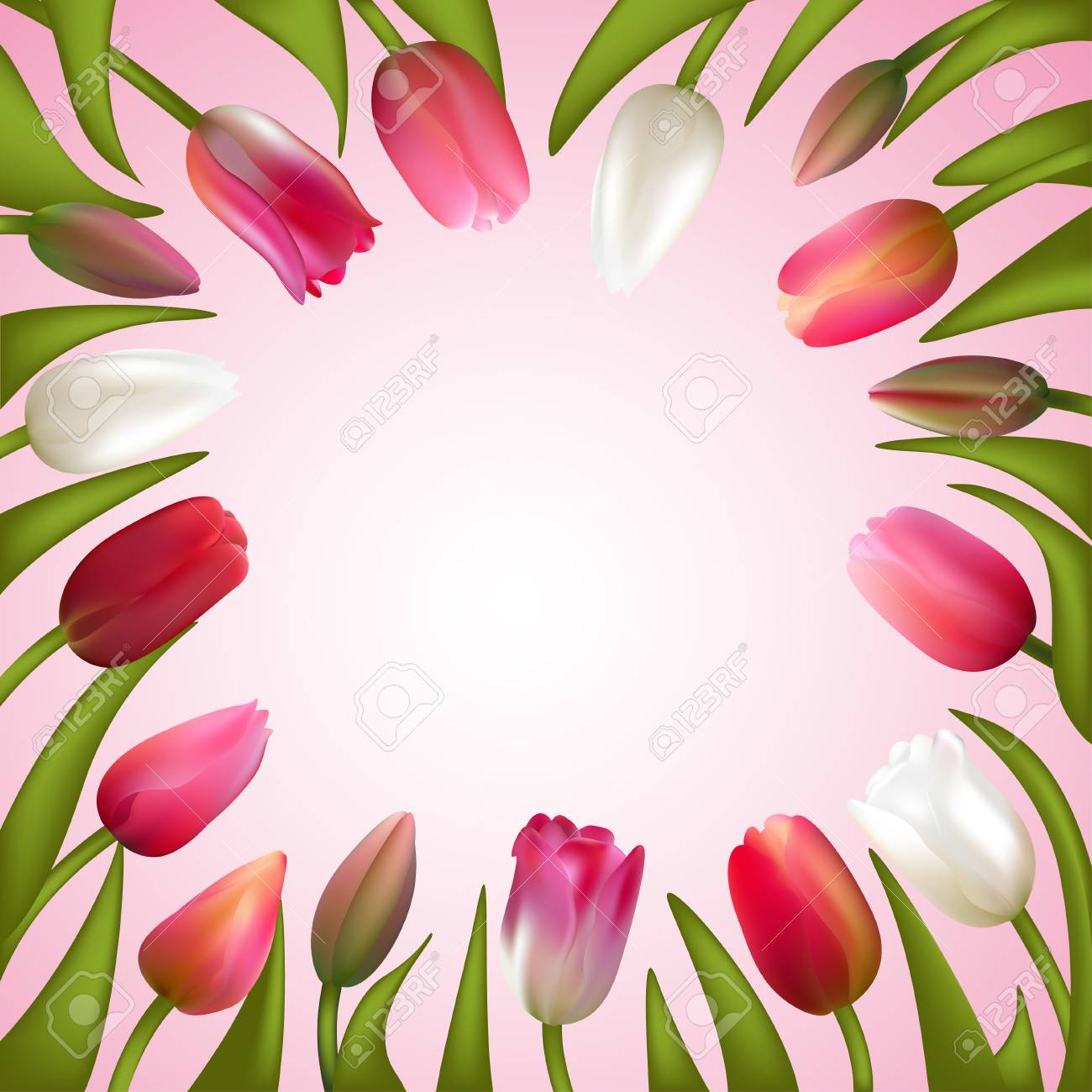 Tulips Spring Flowers Frame Border Floral Background Vector