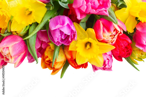 Border Tulips Daffodils Closeup On White Stock Photo Edit Now