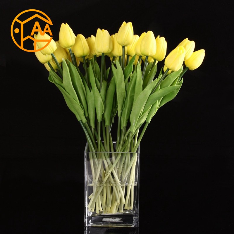 10pcs Yellow Latex Real Touch Tulip Flower With Leaves For Wedding