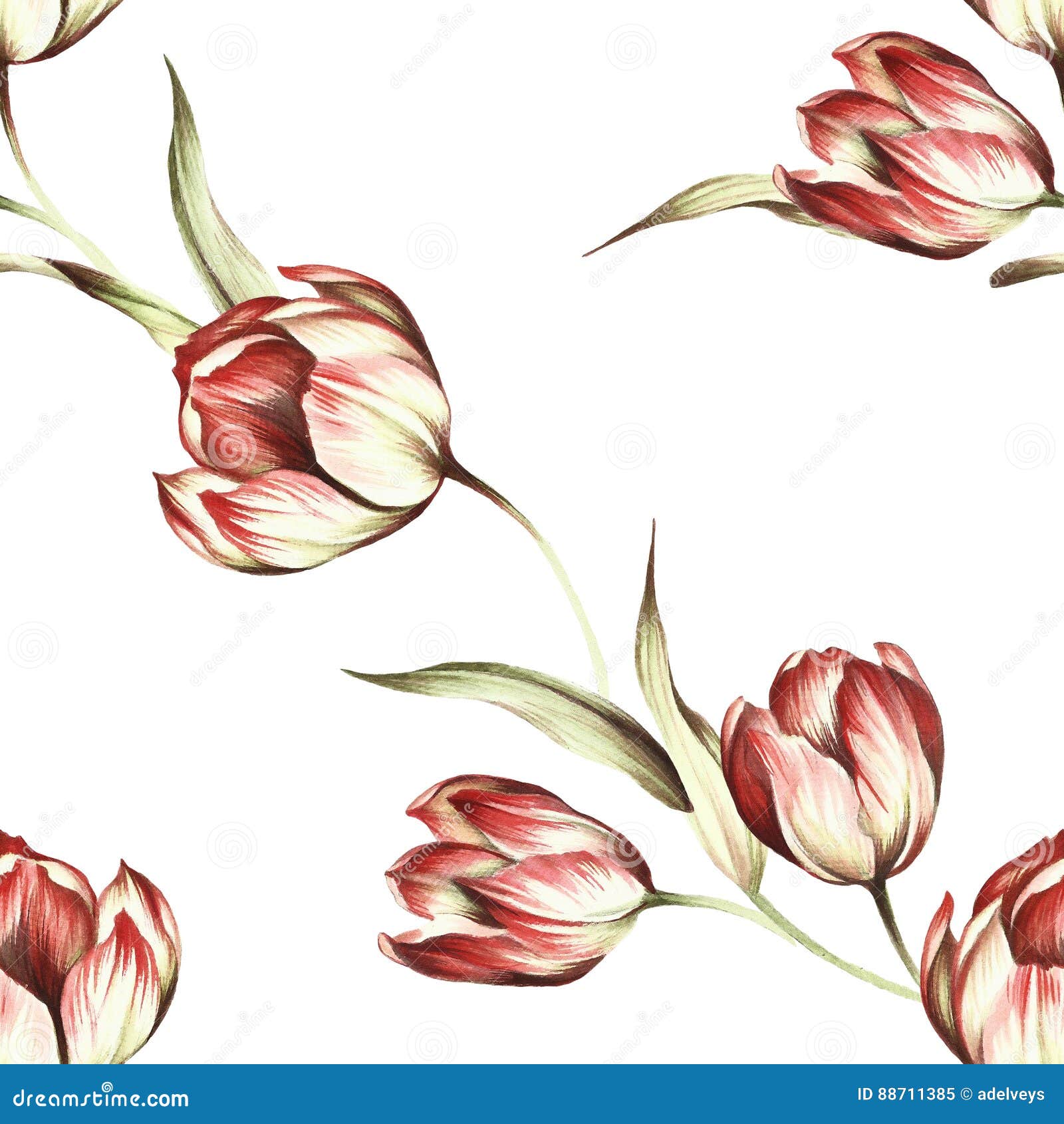 Seamless Pattern With Tulips Hand Draw Watercolor Illustration