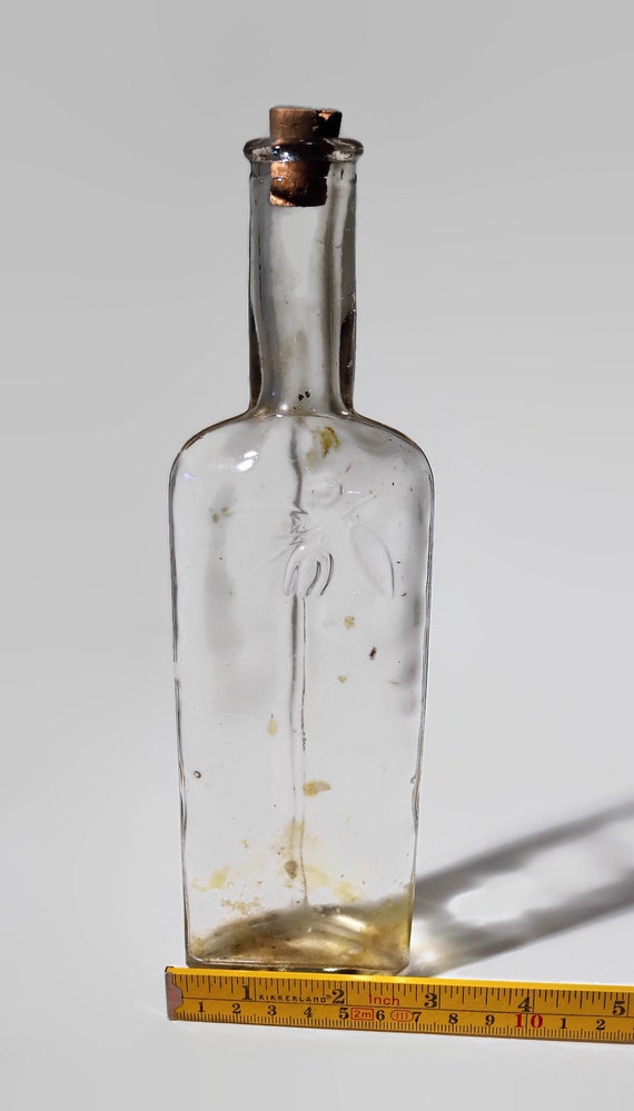 Ca 1900 S Clear Glass 3 Sided Bottle W Embossed Tulips Etsy