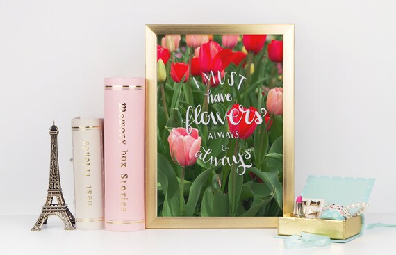Tulips Garden Flowers Quote Floral Hand Lettered Etsy