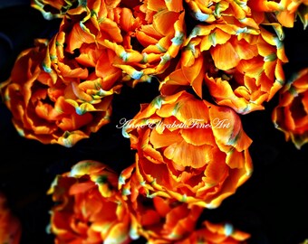Surrealistic Parrot Tulip Blossom On Black Background Fine Art