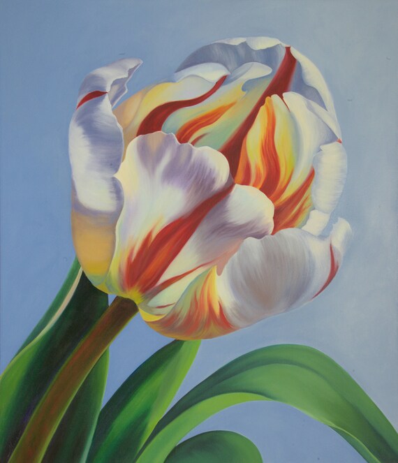 Parrot Tulip Red White Tulip Painting Flower Painting Flower Art