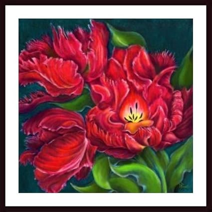 Amazon Com Parrot Tulips Red Framed Black Wood White Matte