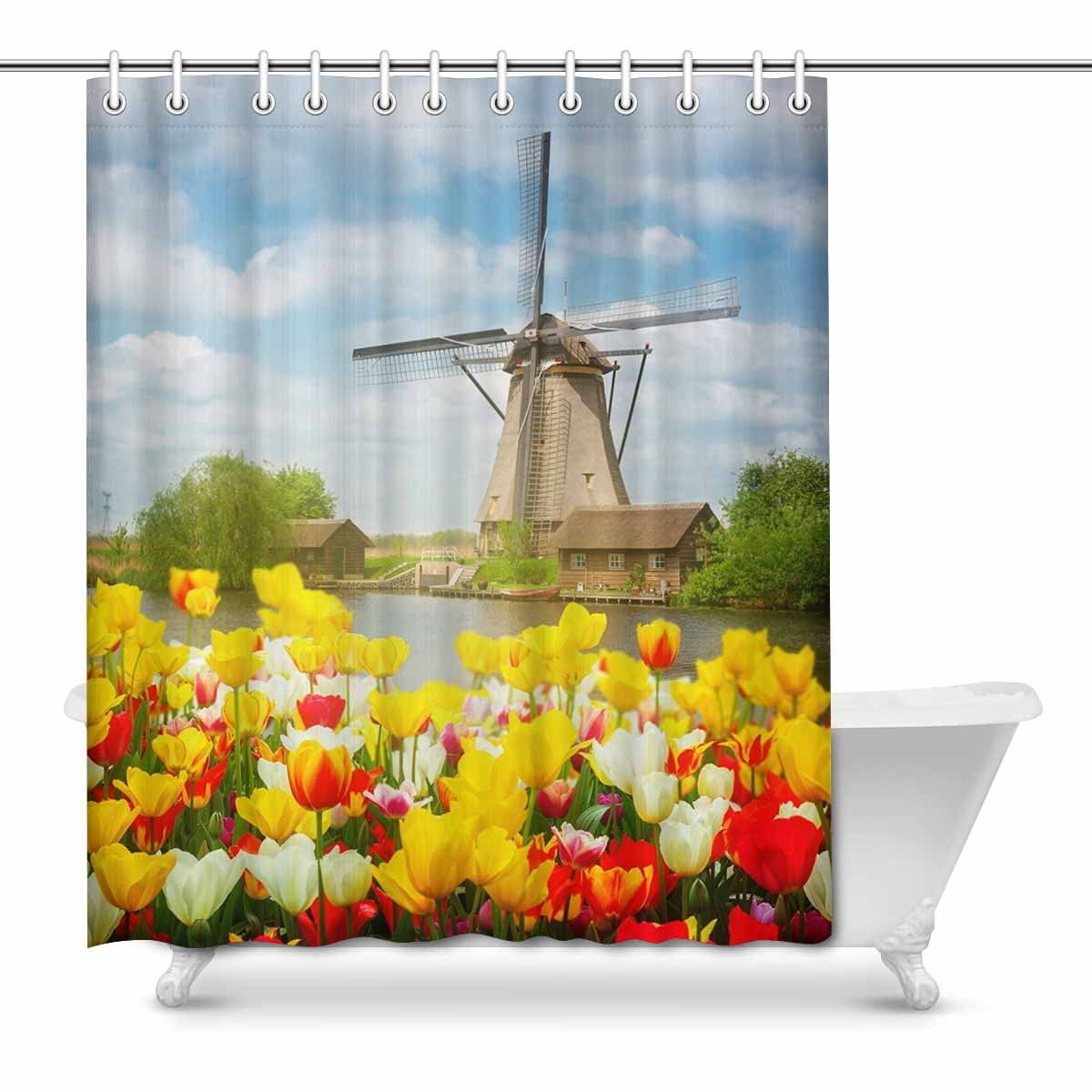 Pop Holland Dutch Windmill Over Colorful Tulips Field Bathroom