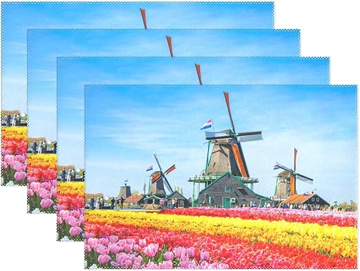 Amazon Com Lyetny Dutch Windmill Tulips Table Mat Durable