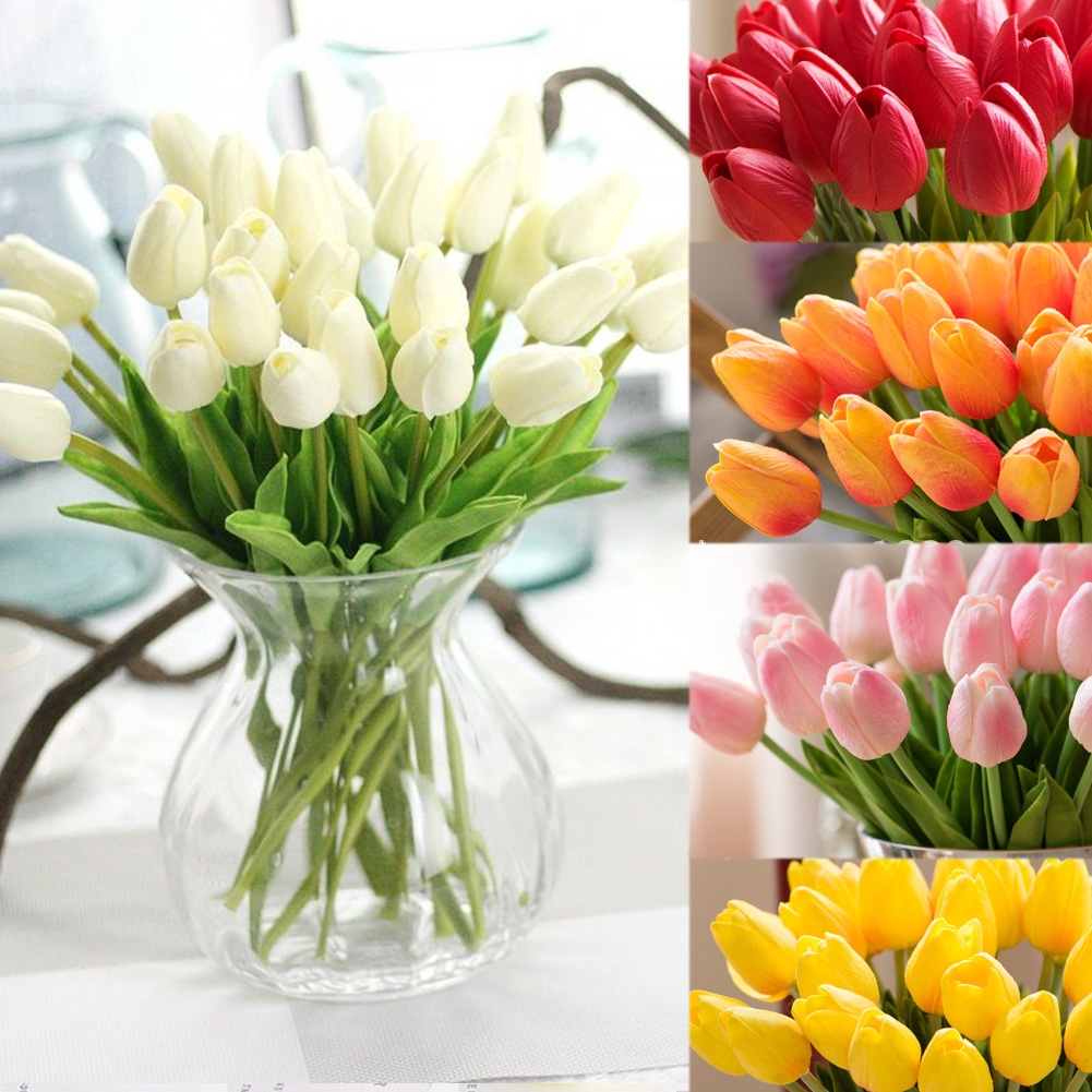 Artificial Flowers Fake Tulips Pu Floral Arrangement Bouquet Home