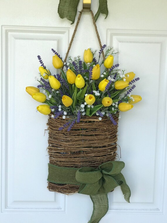 Front Door Basketlavender And Tulip Basket Farmhouse Flower Etsy