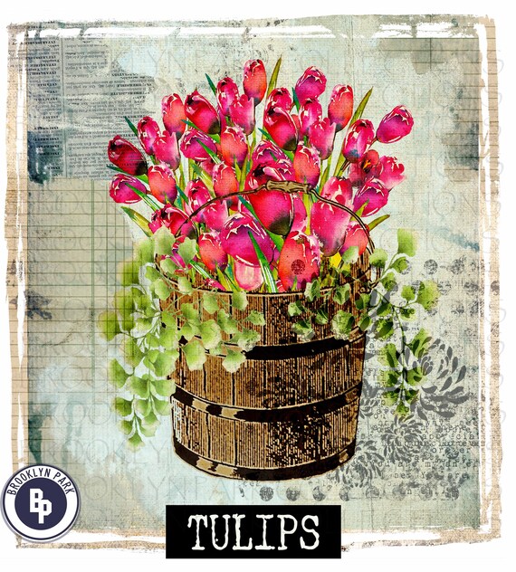Rustic Farmhouse Tulip Flowers Primitive Bucket Instant Etsy