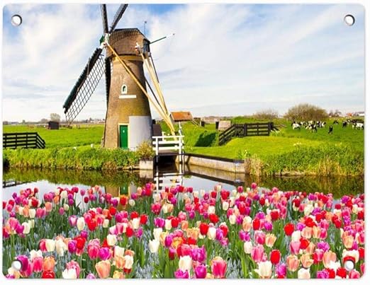 Amazon Com Spring Flowers Tulips Windmill Diy Wall Art Metal Tin