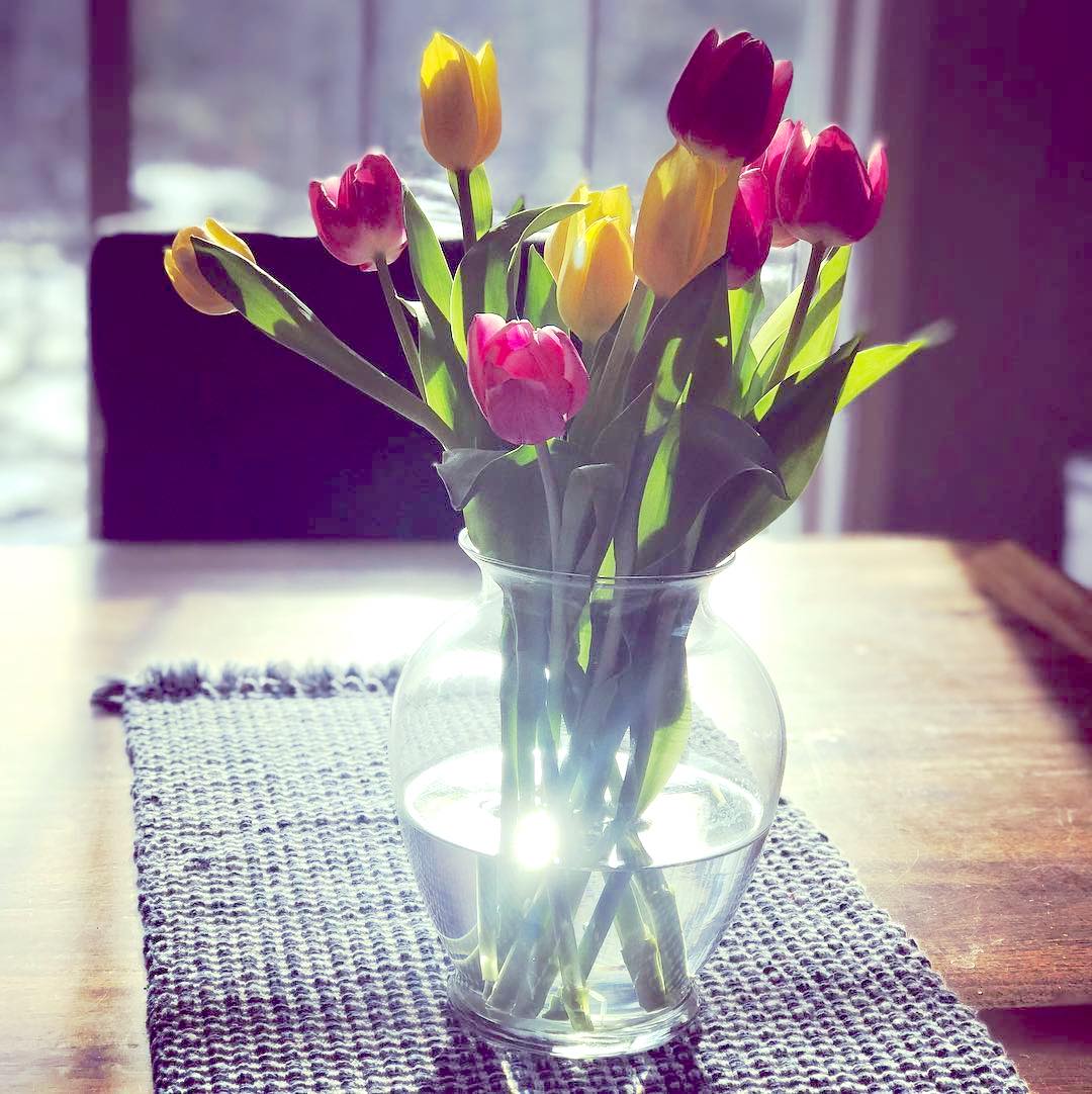 While another noreaster is on its way today i continue to remain in blissful denial of the outside and just look at the pretty tulips gracing my dining room and living room.