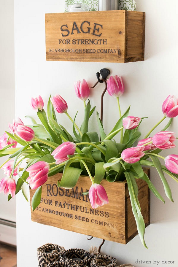 I purchased two bunches of tulips for 699 each at wegmans supermarket. With the abundance of tulips in all the stores it only made sense to use them on my spring mantel. The farmhouse tulips boutique.