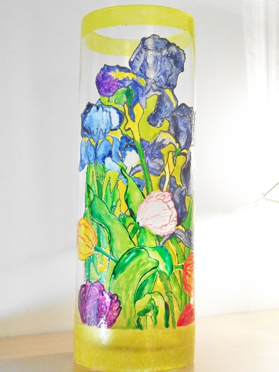 Tall Vase Van Gogh Style Irises And Tulips Etsy