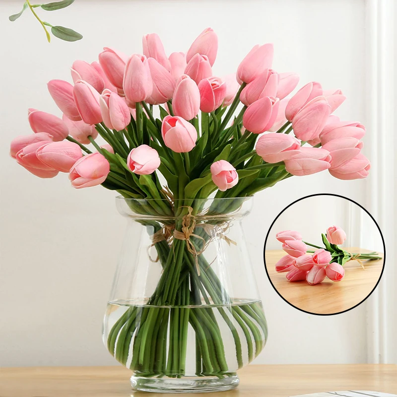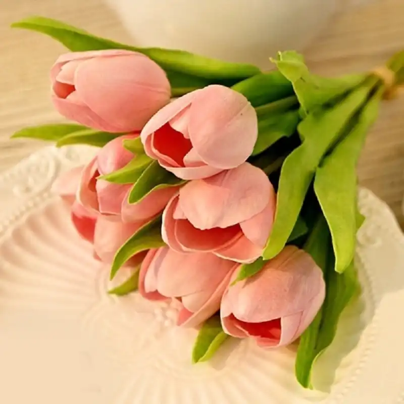 10 Pcs Fashion Artificial Beauty Flower Tulip With Leave Flower