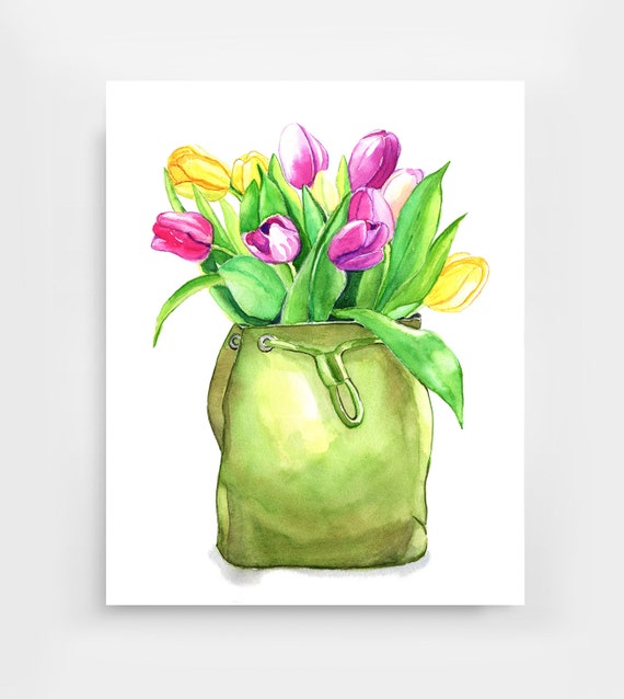 Tulips Watercolor Flower Art Print Purple Home Decor Pink Tulip