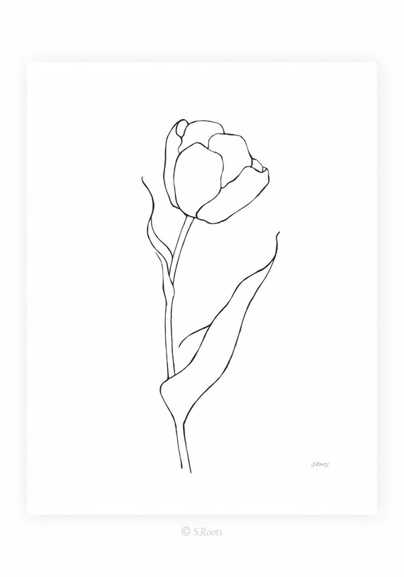 Printable Art Single Tulip Line Drawing Ink Pen Sketch For Etsy