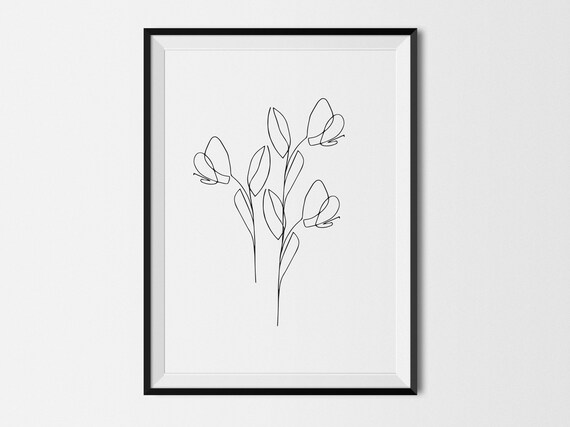 Tulip Print Flower Wall Art Tulip One Line Art Abstract Etsy
