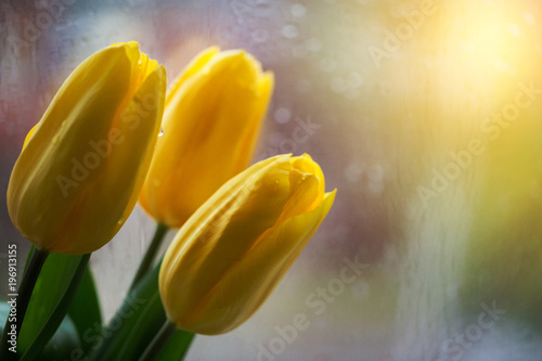 Yellow Tulips Growing Outside On A Gray Day Stock Photo Image Of