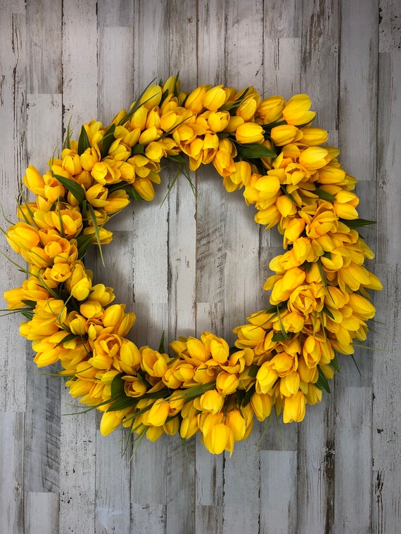 Yellow Tulip Wreath For Front Door Spring Themed Decor Etsy