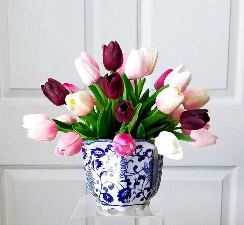 Real Touch Pink Tulips Centerpiece Pink Faux Floral Etsy