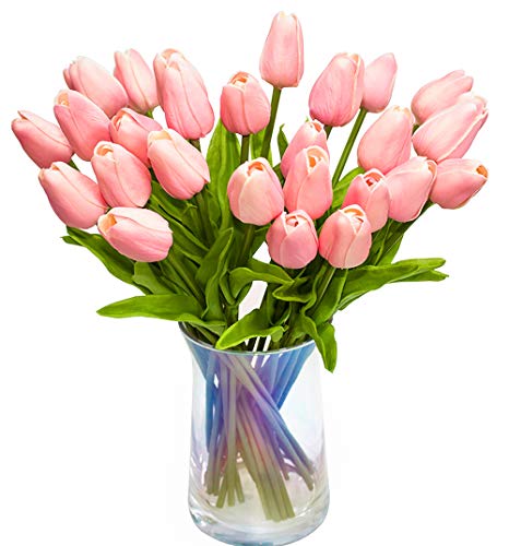 30 Pink Tulips Artificial Flowers Real Touch Pu Artificiales Para